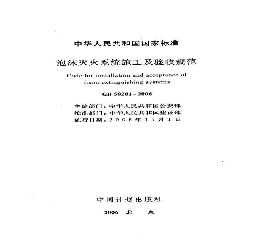 GB 50281-2006 泡沫灭火系统施工及验收规范资料下载,喜欢的朋友可以下载收藏!