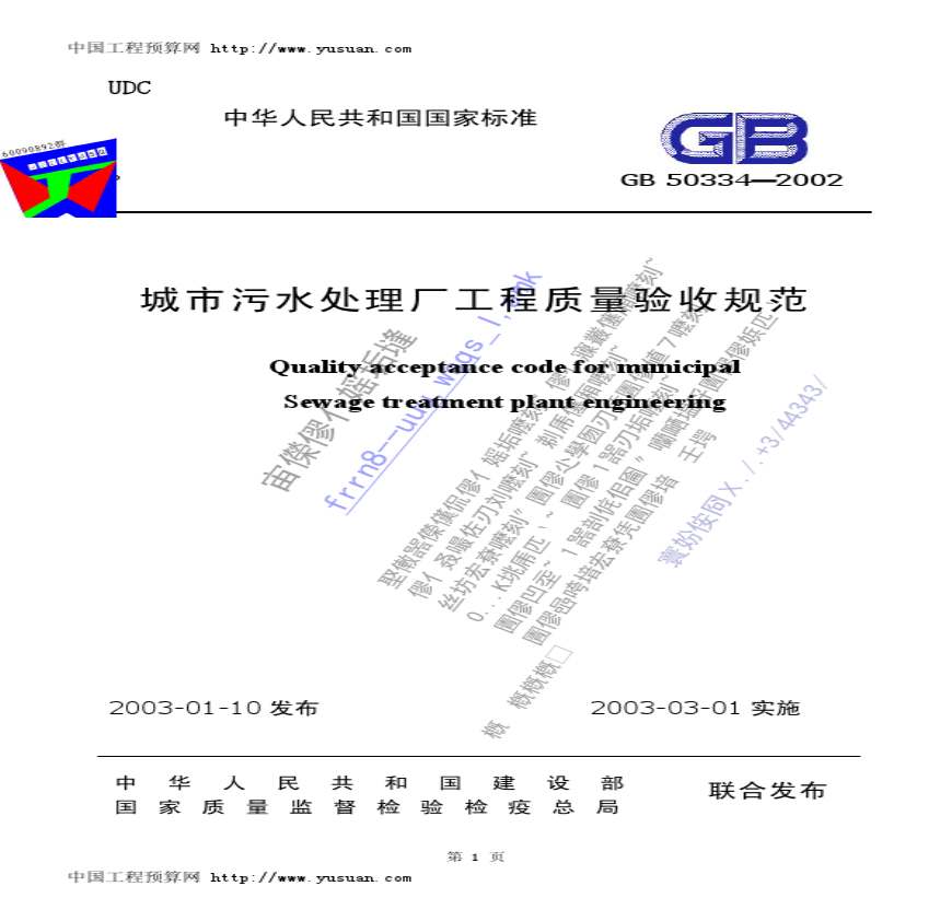 GB50334-2002 城市污水处理厂工程质量验收规范资料下载,喜欢的朋友可以下载收藏!