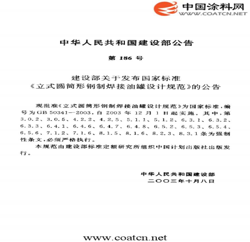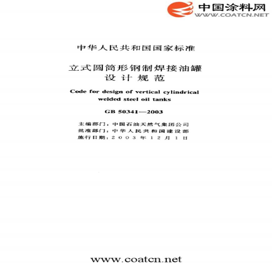 GB 50341-2003 立式圆筒形钢制焊接油罐设计规资料下载,喜欢的朋友可以下载收藏!