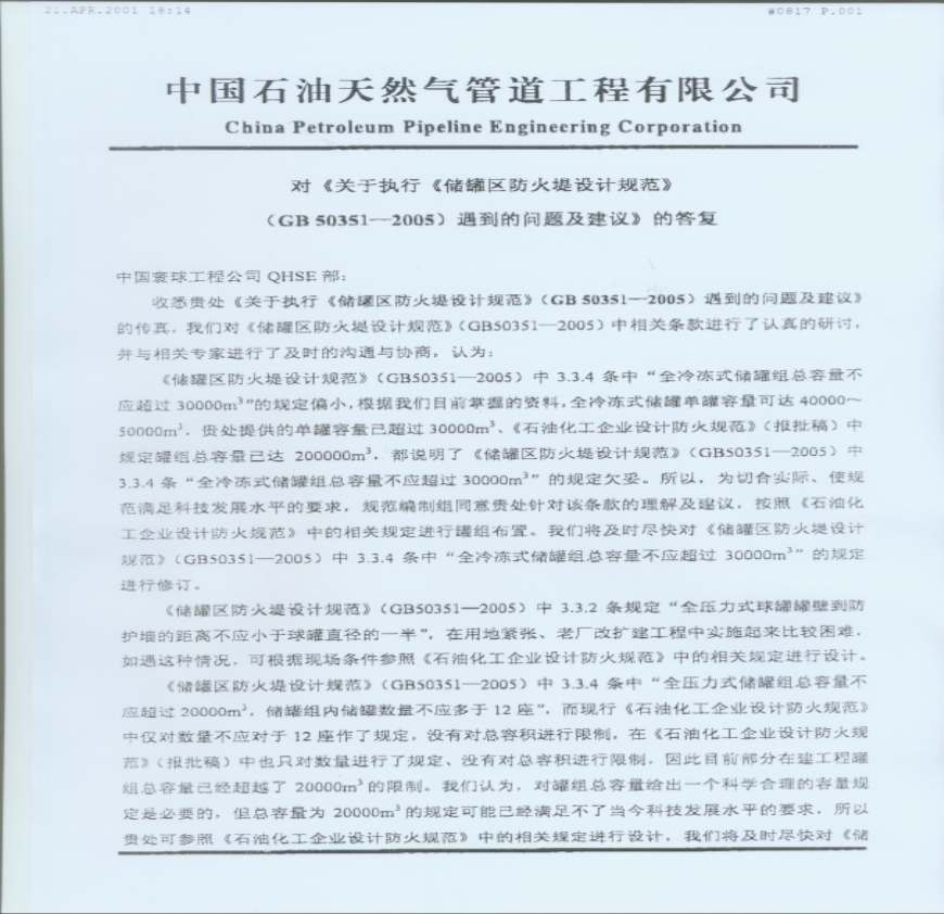 GB 50351-2005对《关于执行《储罐区防火堤设计规范》遇到的问题及建议》的答复资料下载,喜欢的朋友可以下载收藏!