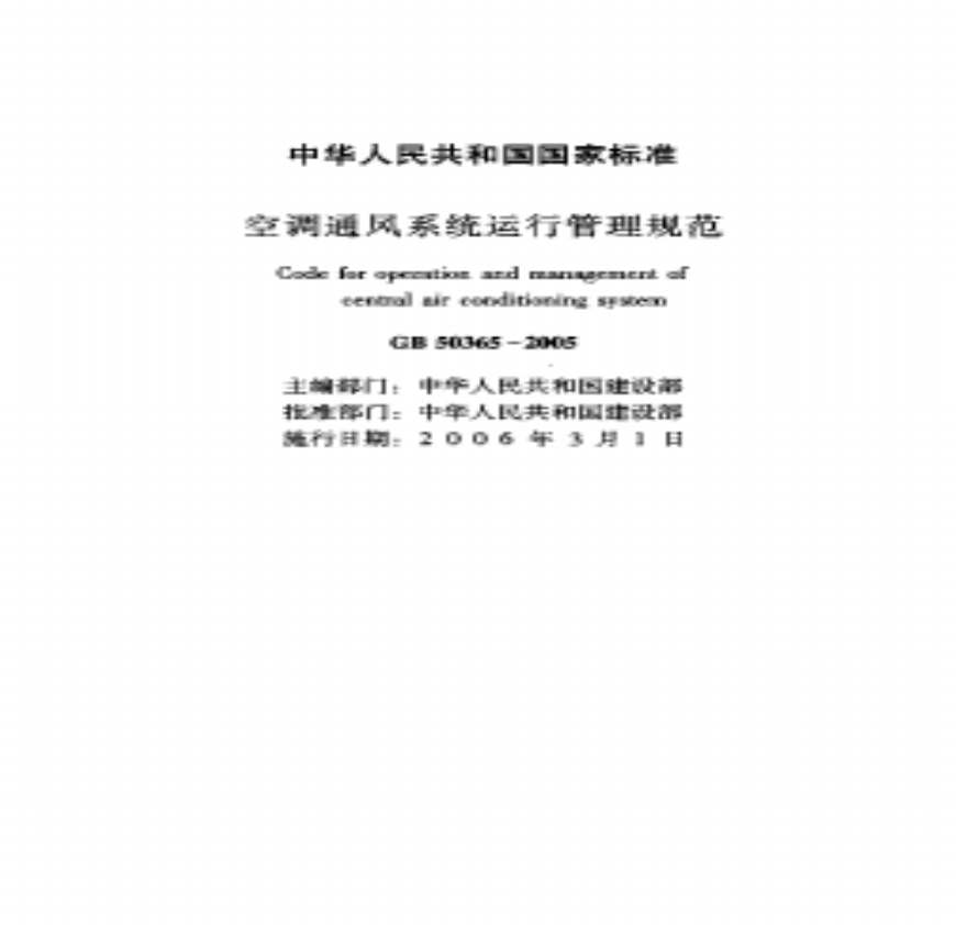 GB 50365-2005空调通风系统运行管理规范资料下载,喜欢的朋友可以下载收藏!