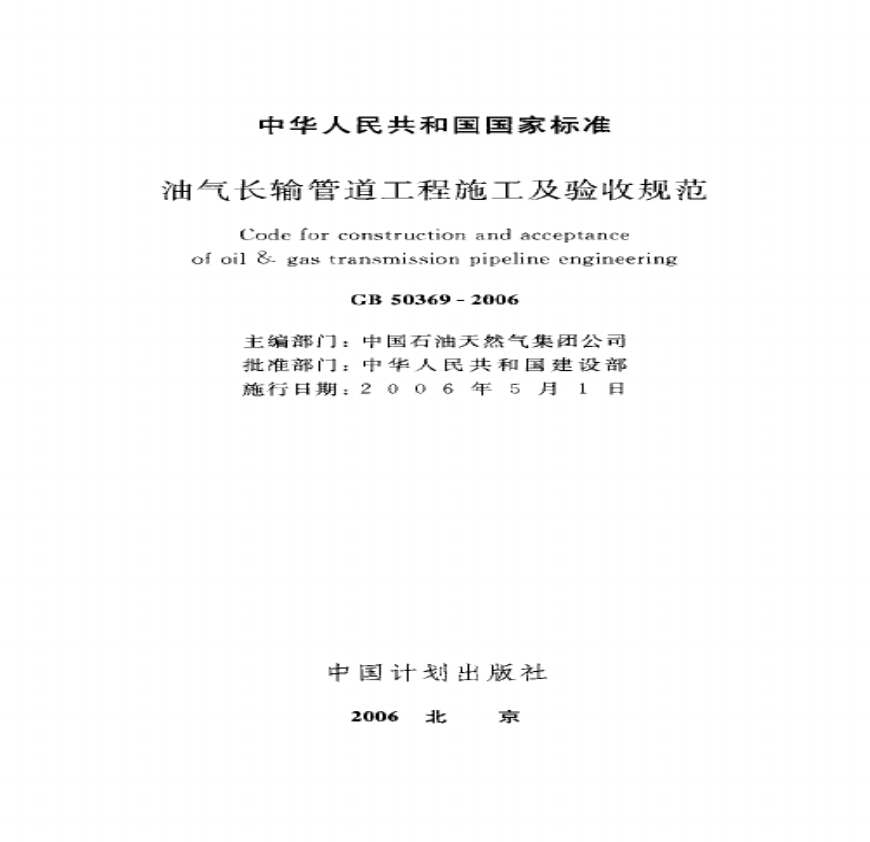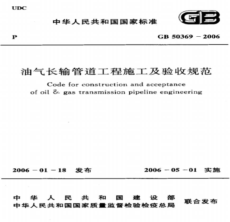 GB 50369-20006油气长输管道工程施工及验收规范资料下载,喜欢的朋友可以下载收藏!