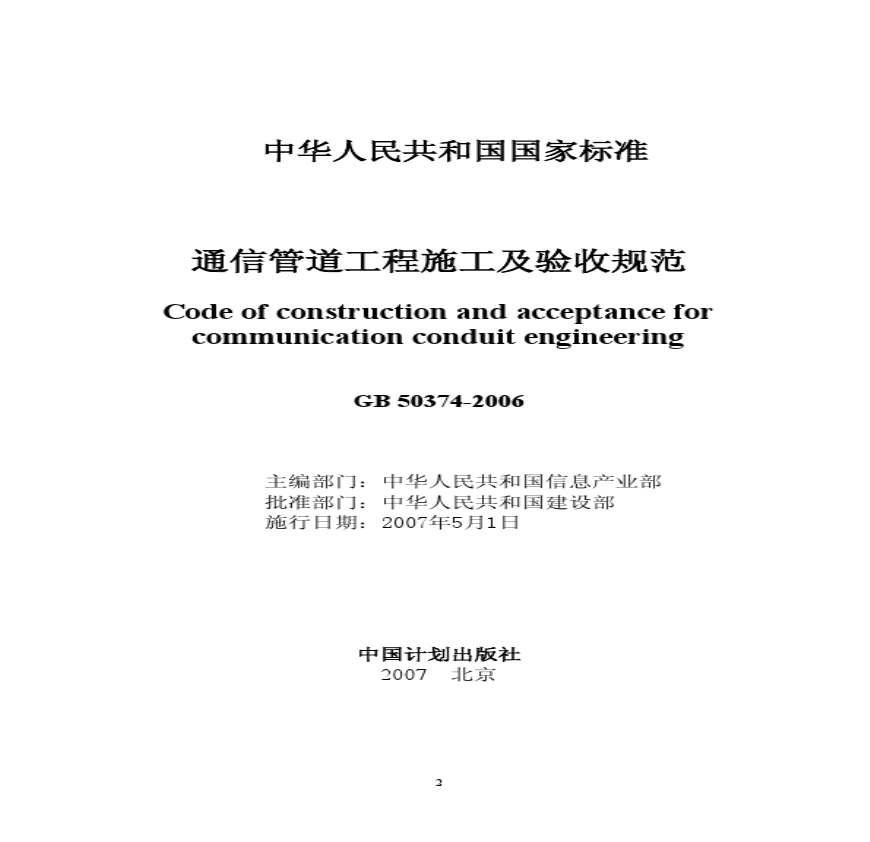 GB50374-2006 通信管道工程施工及验收规范资料下载,喜欢的朋友可以下载收藏!