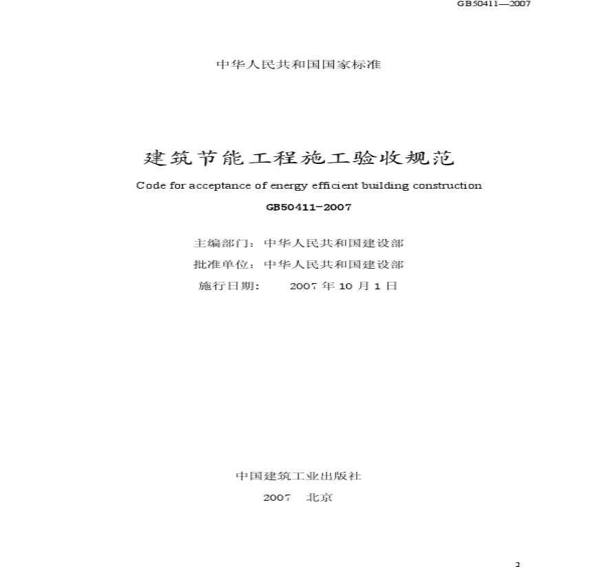 GB50411-2007《建筑节能工程施工质量验收规范》.pdf 免费下载
