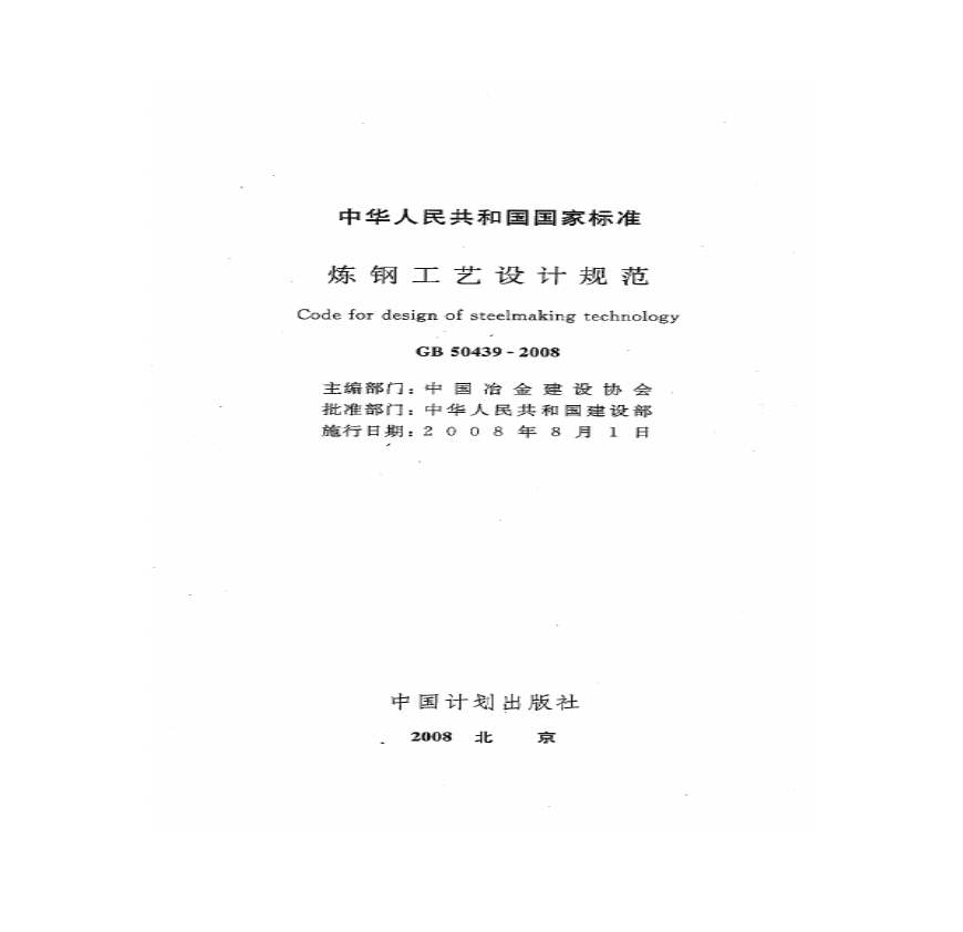 GB 50439-2008 炼钢工艺设计规范资料下载,喜欢的朋友可以下载收藏!