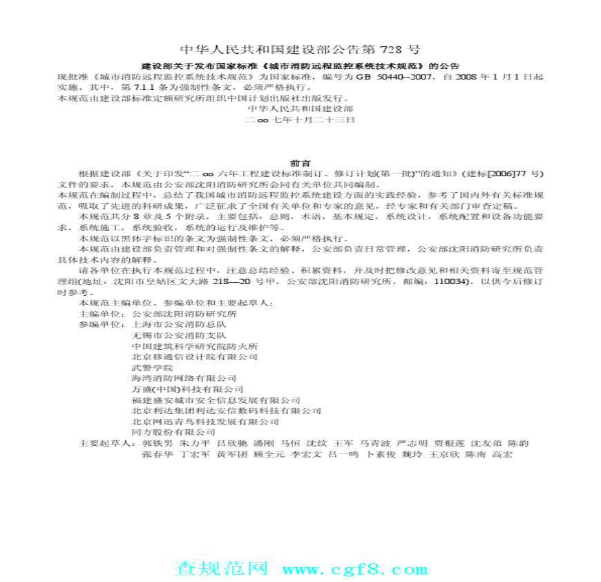 GB 50440-2007 城市消防远程监控系统技术规范资料下载,喜欢的朋友可以下载收藏!