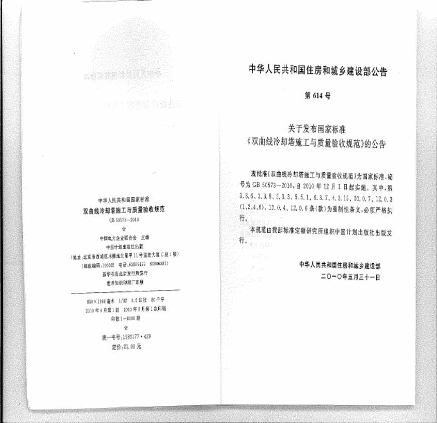 GB50573-2010双曲线冷却塔施工及质量验收规范资料下载,喜欢的朋友可以下载收藏!