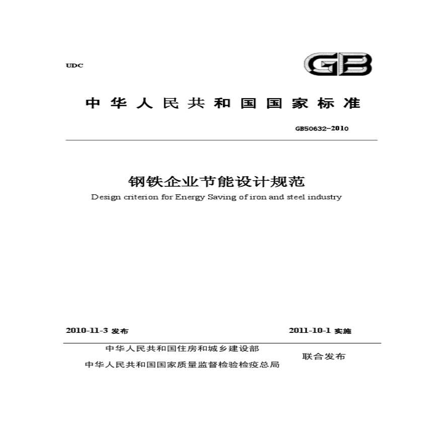 GB 50632-2010 钢铁企业节能设计规范 非正式版.pdf 免费下载