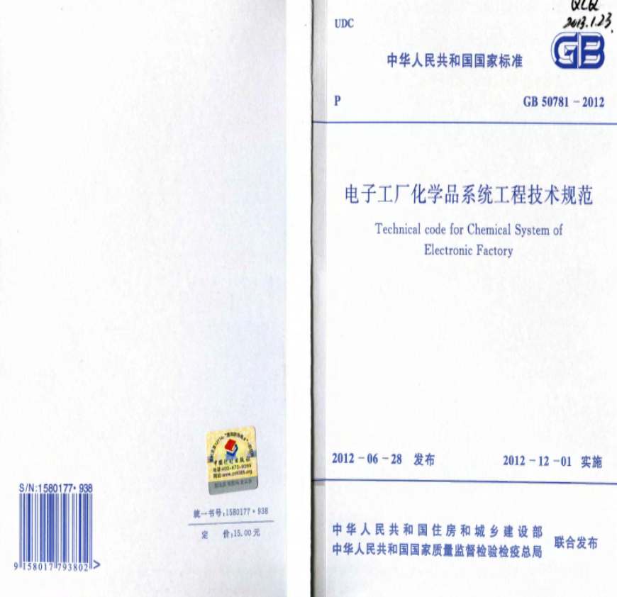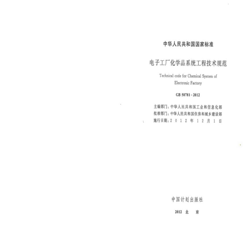 GB 50781-2012 电子工厂化学品系统工程技术规范资料下载,喜欢的朋友可以下载收藏!