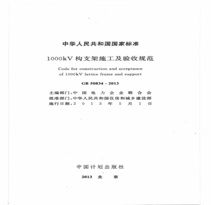 GB 50834-2013 1000kV 构支架施工及验收规范资料下载,喜欢的朋友可以下载收藏!