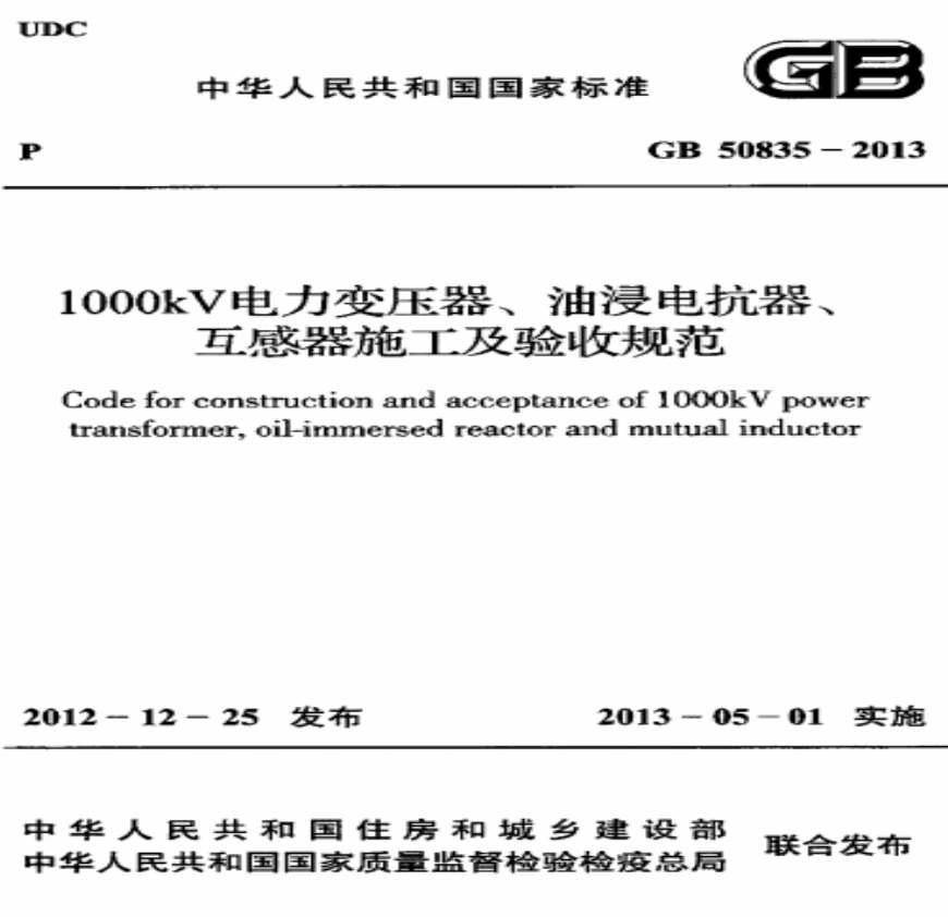 > GB50835-2013 1000kV电力变压器、油浸电抗器、互感器施工及验收