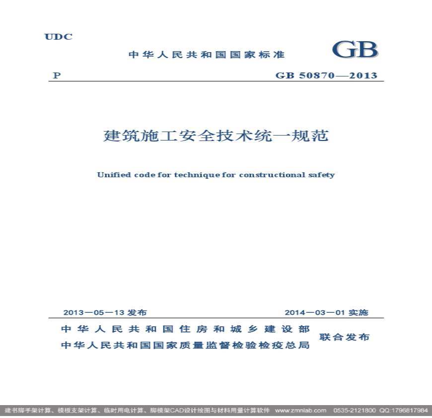 > GB50870-2013建筑施工安全技术统一规范