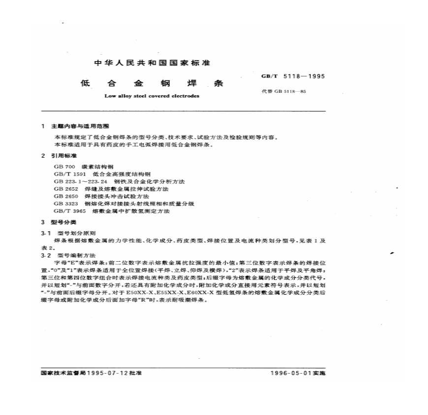 GB 5118-1995-T 低合金钢焊条资料下载,喜欢的朋友可以下载收藏!