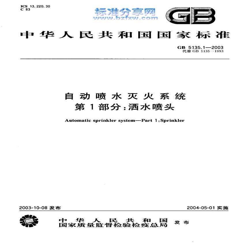 GB 5135.1-2003 自动喷水灭火系统 第1部分 洒水喷