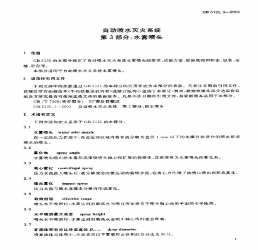GB5135.3-2003自动喷水灭火系统-水雾喷头