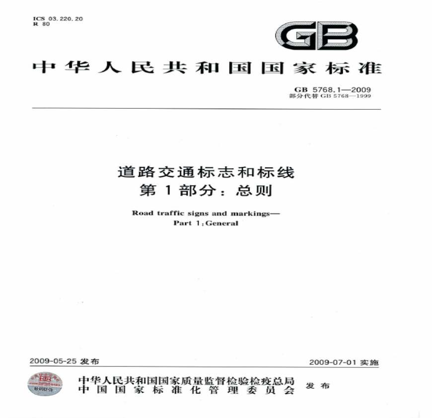 GB 5768.1-2009 道路交通标志和标线资料下载,喜欢的朋友可以下载收藏!