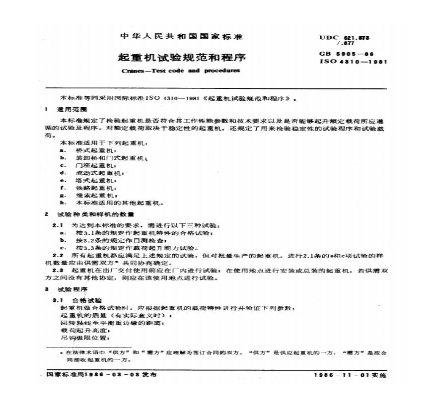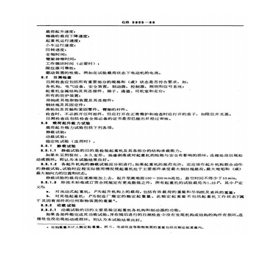 > GB 5905-1986 起重机试验规范和程序
