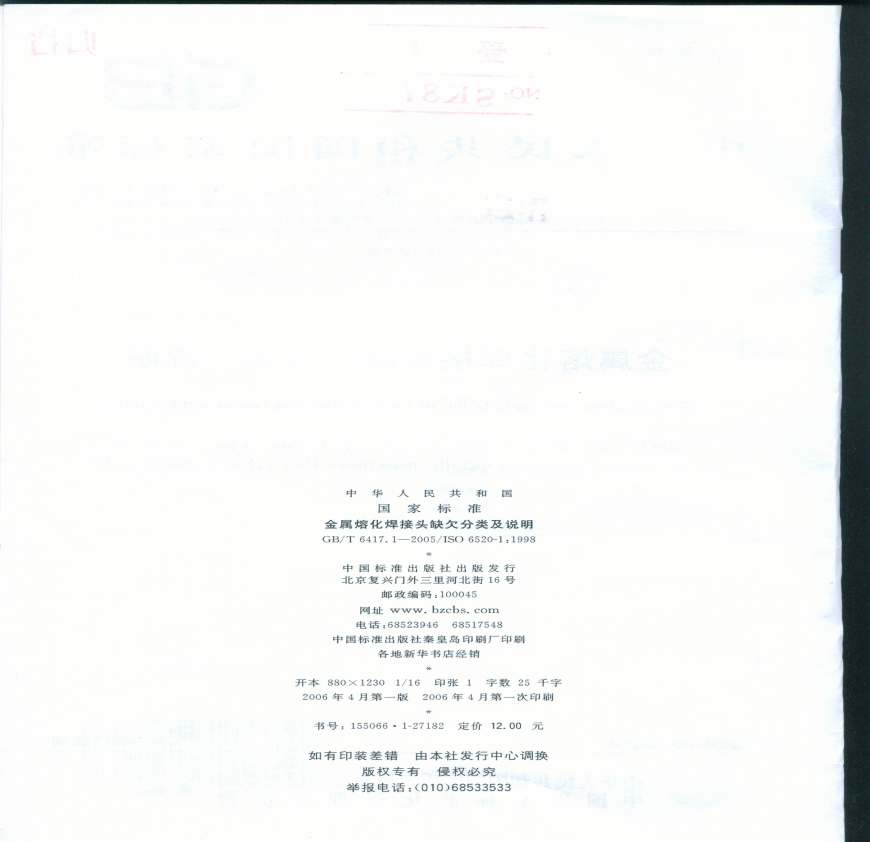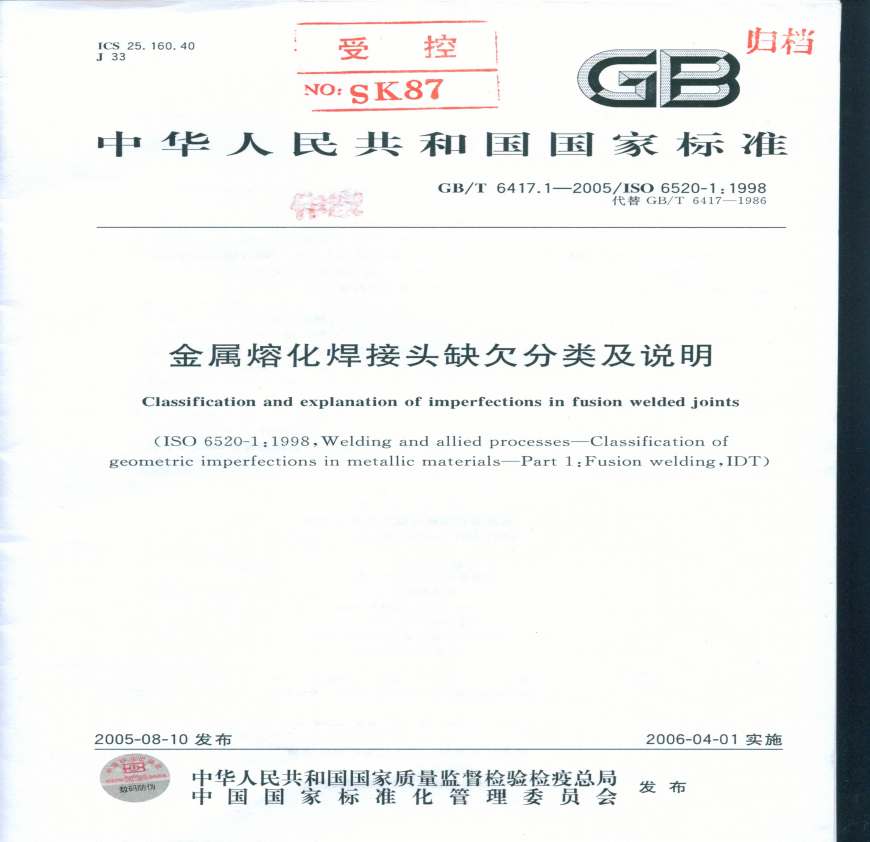 T 国家标准《T 》本部分规定了熔化焊接头中焊接缺欠的分类和说明。