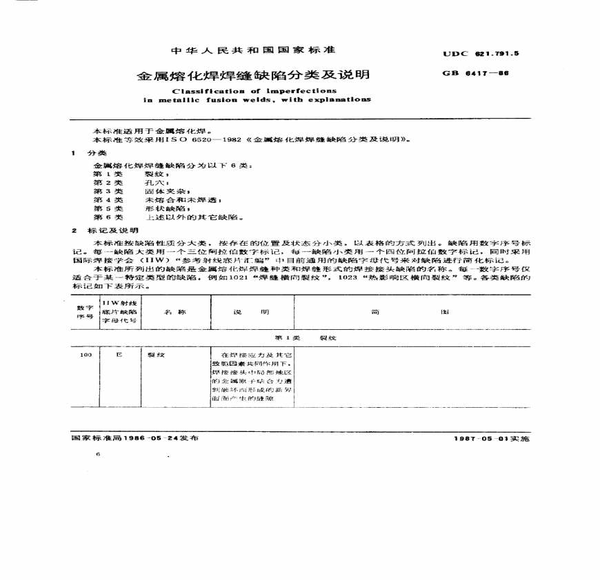 GB 6417-86 金属熔化焊焊缝缺陷分类及说明.pdf 免费下载