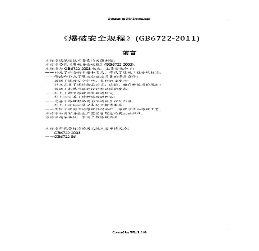 GB6722-2011爆破安全规程资料下载,喜欢的朋友可以下载收藏!