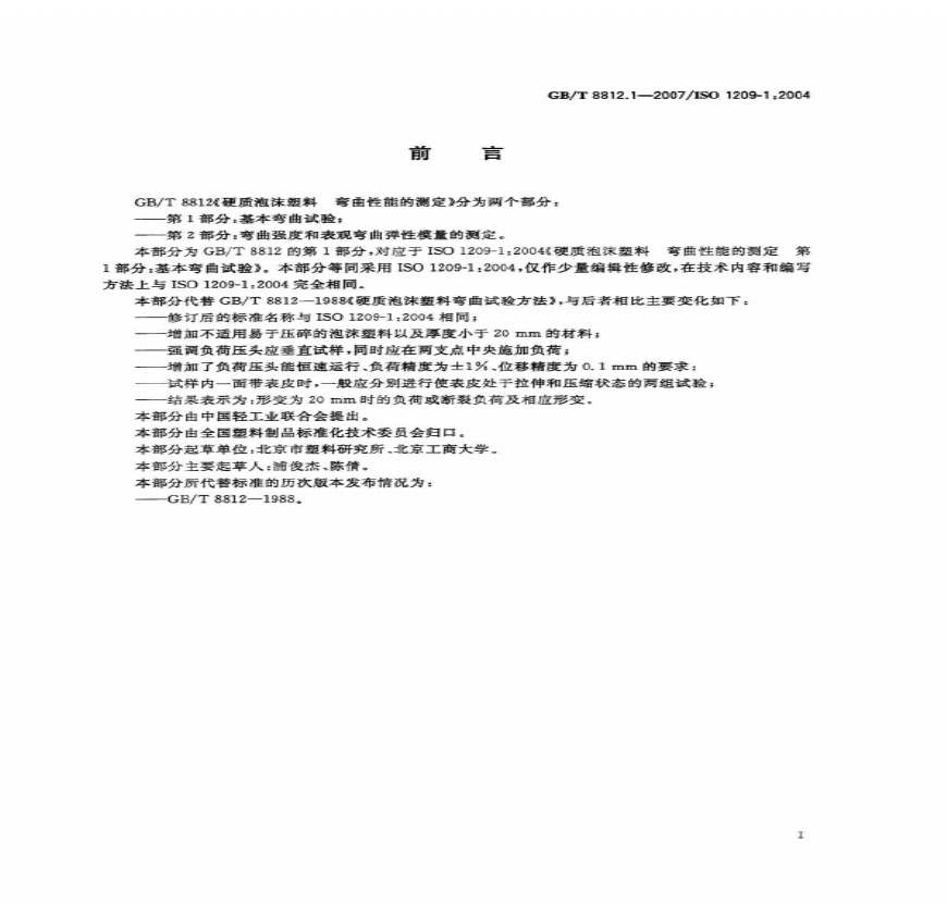 国标简介: T T 的本部分规定了在三点式弯曲负荷作用下,用于测定试样在规定形变下