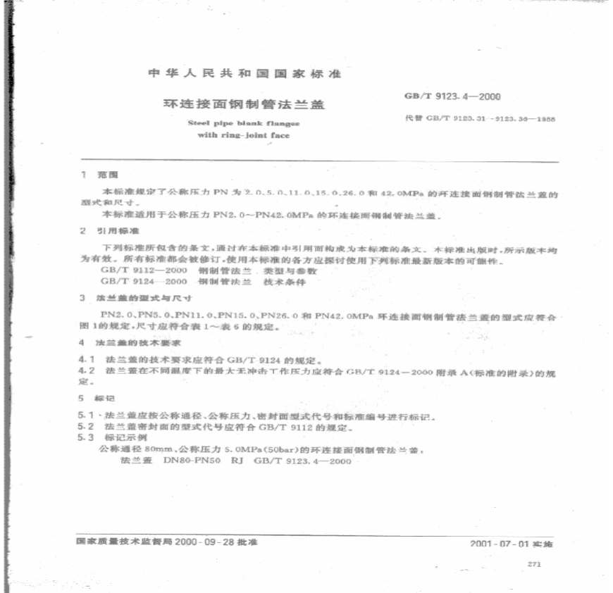 GB9123.4-2000-T 环连接面钢制管法兰盖.pdf 免费下载