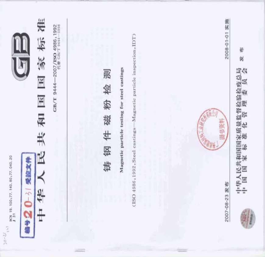 GB9444-2007-T 铸钢件磁粉检测资料下载,喜欢的朋友可以下载收藏!
