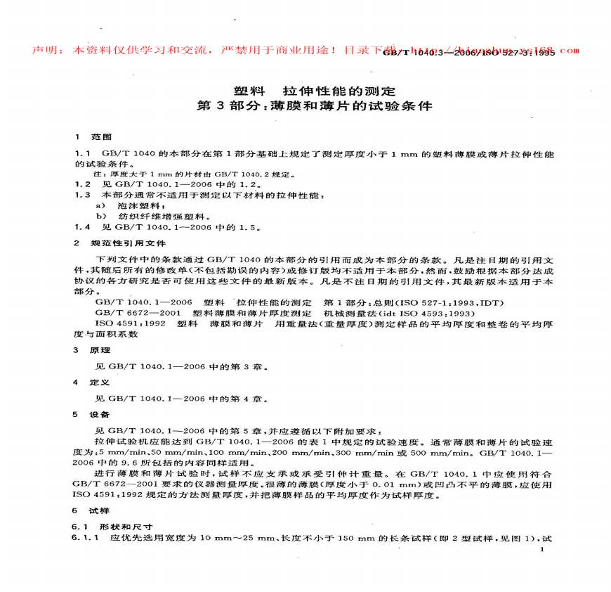GBT_1040.3-2006__塑料拉伸性能的测试.pdf 免费下载