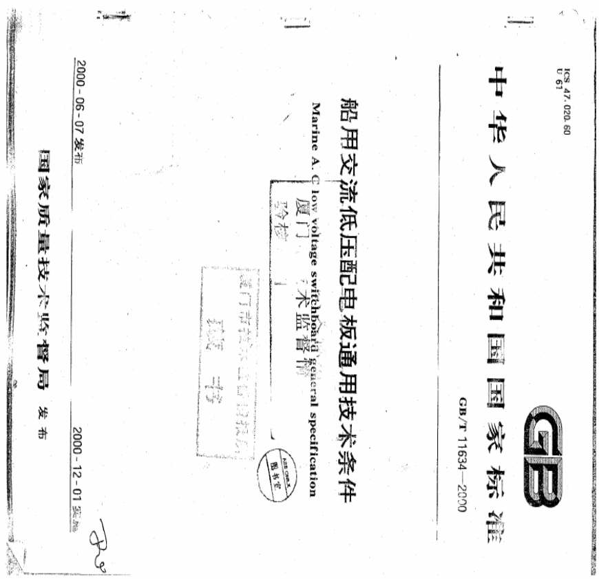 板条件国家标准(GB)《板条件》本标准规定了船用交流板的、试验方法、检验规则及标志、使用说明书、包装、运输和贮存。