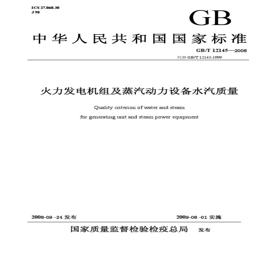 > GBT12145-2008火力发电机组及蒸汽动力设备水汽质量