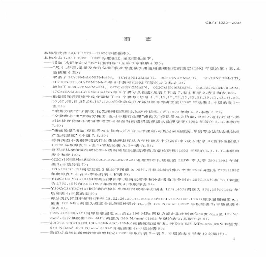 不锈钢棒国家标准(GB)《 不锈钢棒》本标准规定了不锈钢棒的订货内容、分类、代号、尺寸、外形、重量及允许偏差、技术要求、试验方法、检验规则、包装、标志及质量证明书。
