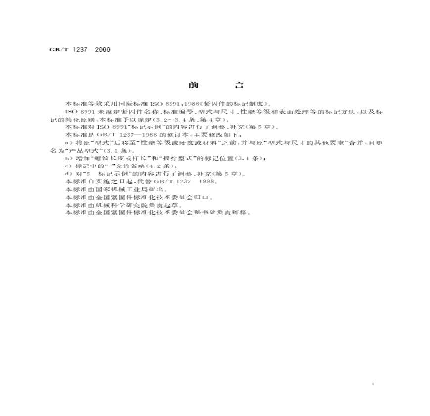 GB-T 1237-2000 紧固件标记方法(前页)资料下载,喜欢的朋友可以下载收藏!