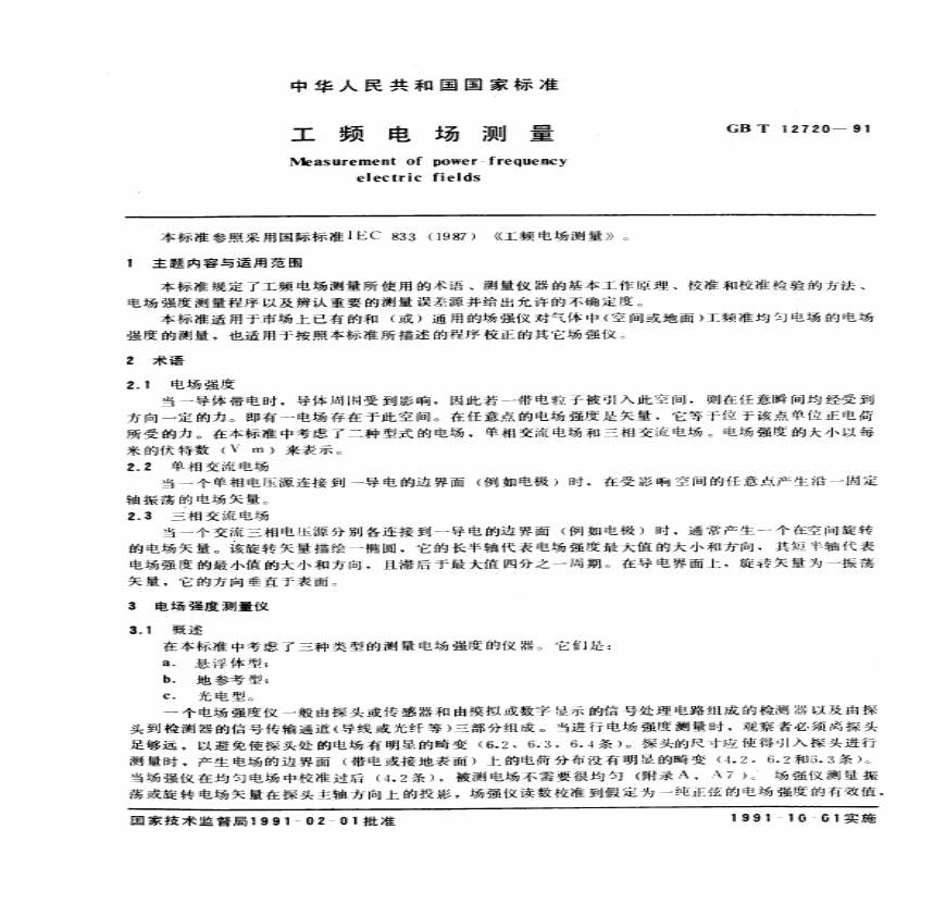 GB-T12720-1991 工频电场测量.pdf 免费下载