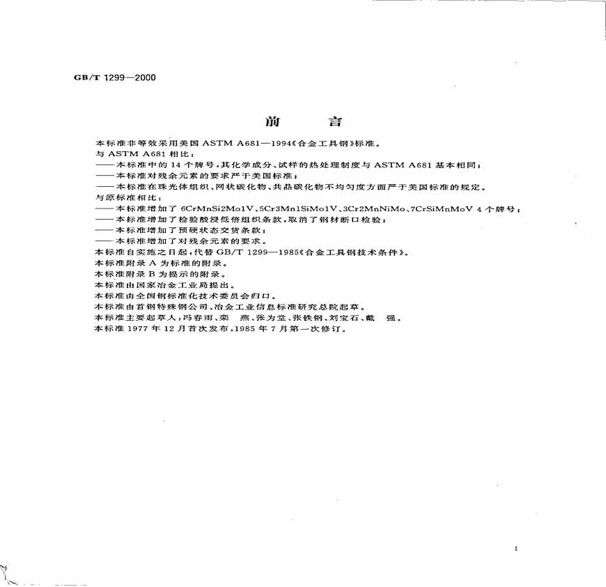 > GBT 1299-2000 合金工具钢