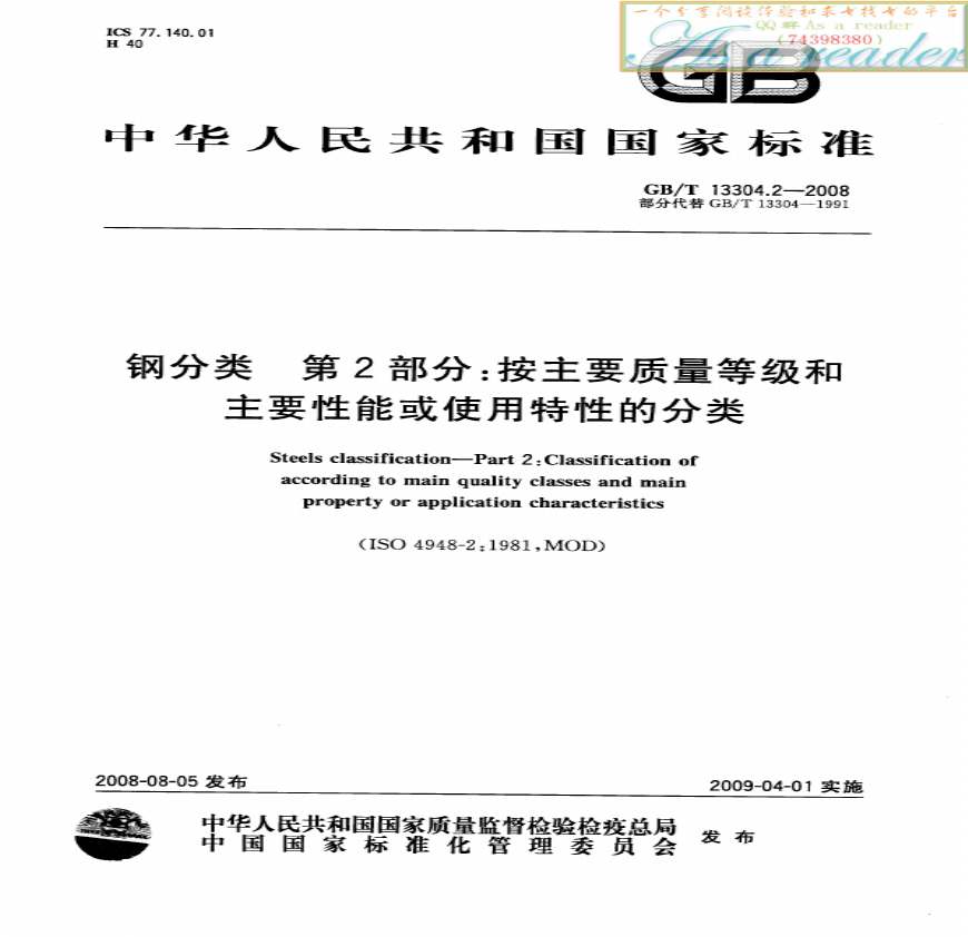 GB T 13304.2-2008 钢分类 第2部分:按主要质量等级和主要性能或使用特性的分类资料下载,喜欢的朋友可以下载收藏!