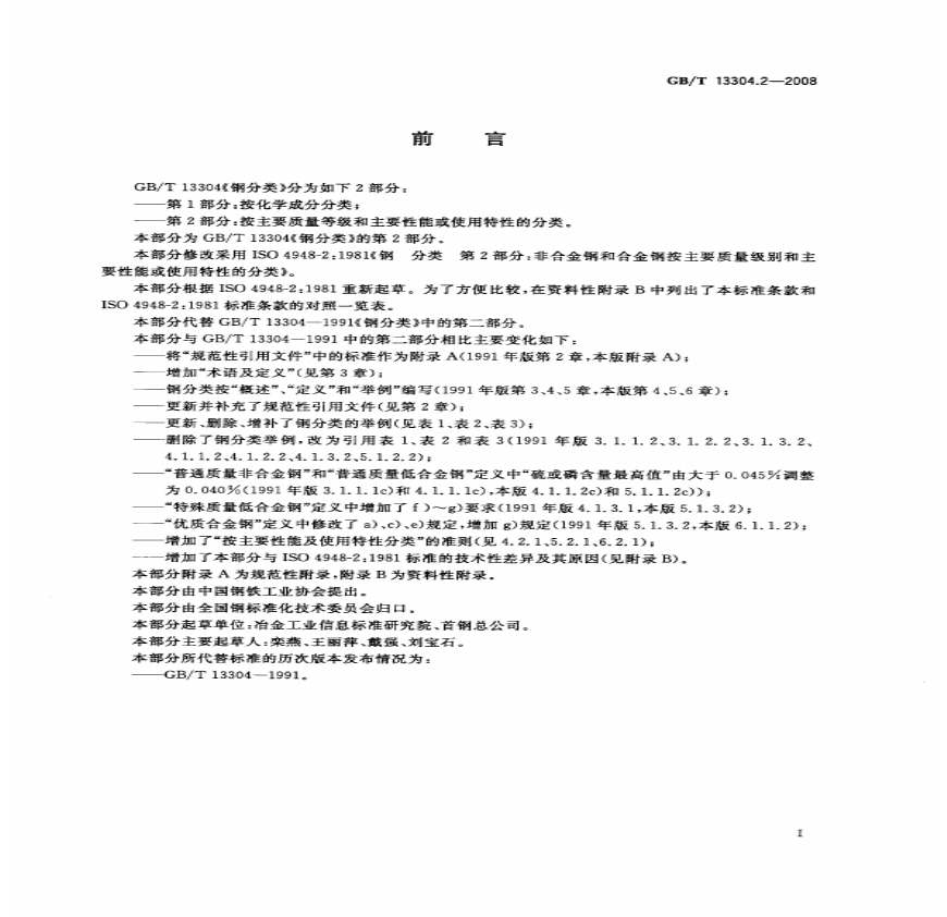> GB T 13304.2-2008 钢分类 第2部分:按主要质量等级和主要性能或