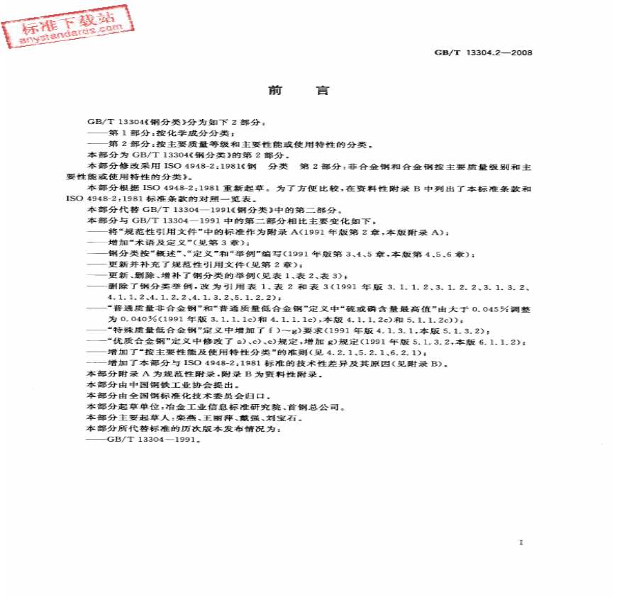 GBT13304.2-2008钢分类+第2部分:按主要质量等级和主要性能或使.pdf 免费下载