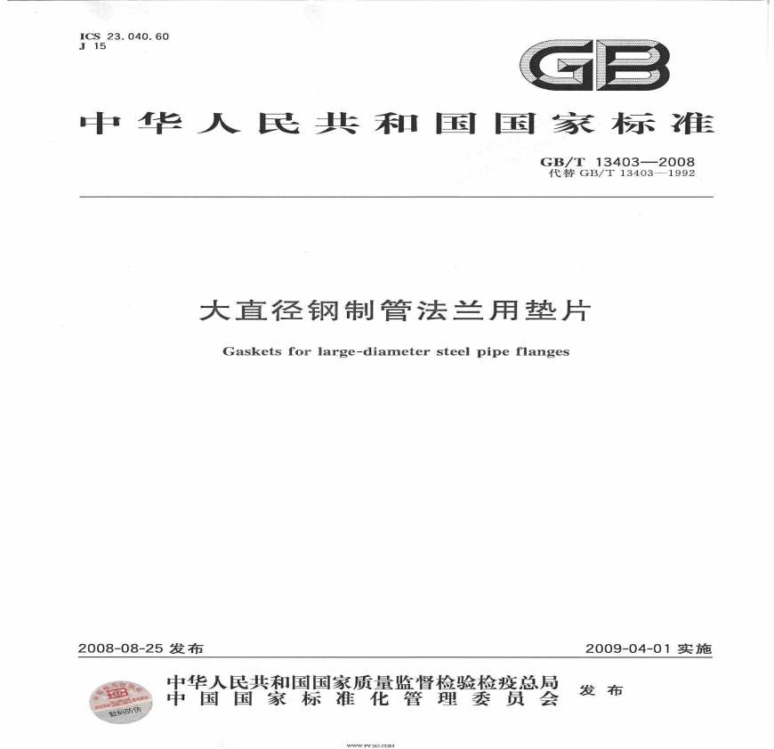 GBT 13403-2008 大直径钢制管法兰用垫片资料下载,喜欢的朋友可以下载收藏!