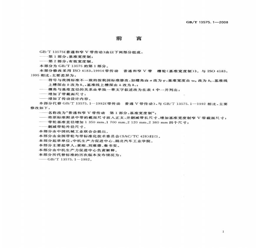 GBT 13575.1-2008 普通和窄V带传动 第1部分:基准宽度制.pdf 免费下载