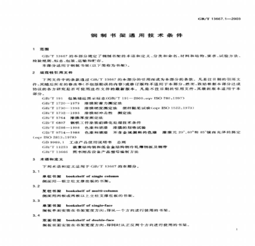GBT 13667.1-2003钢制书架通用技求条件资料下载,喜欢的朋友可以下载收藏!