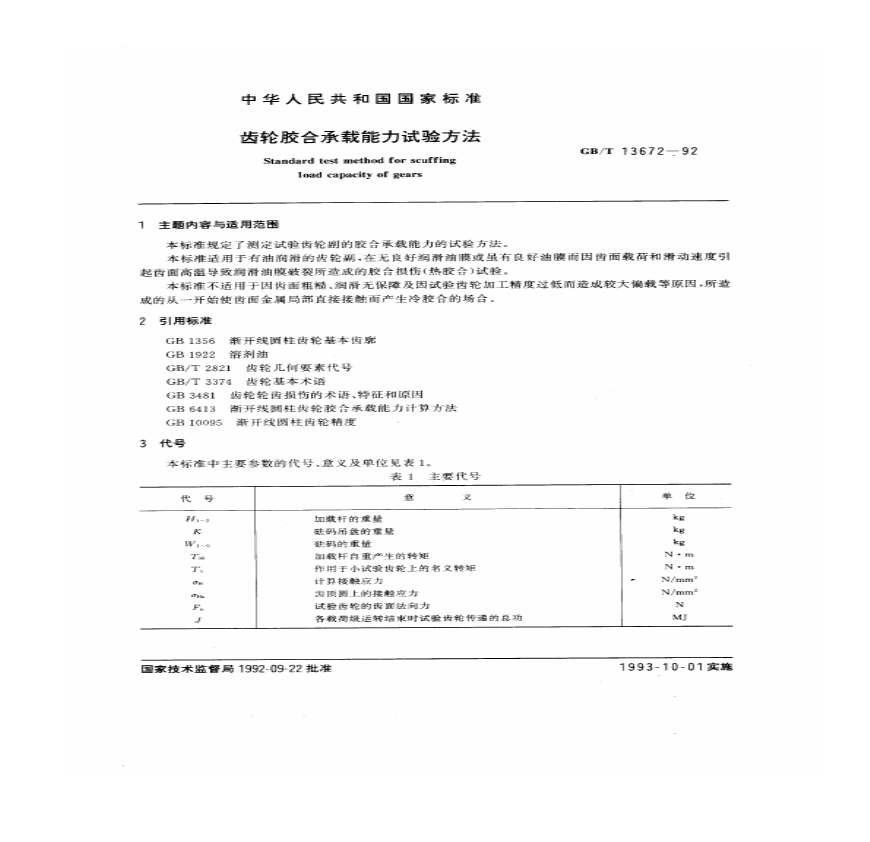 > GBT 13672-1992 齿轮胶合承载能力试验方法