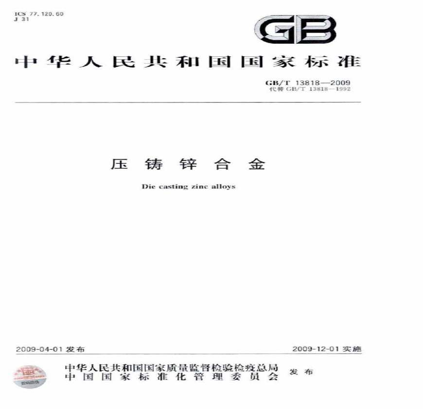 > GB-T13818-2009压铸锌合金