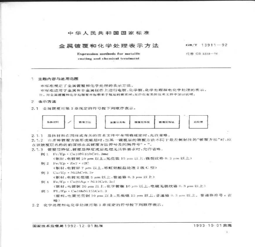 > GBT13911-92《金属镀覆和化学处理表示方法》