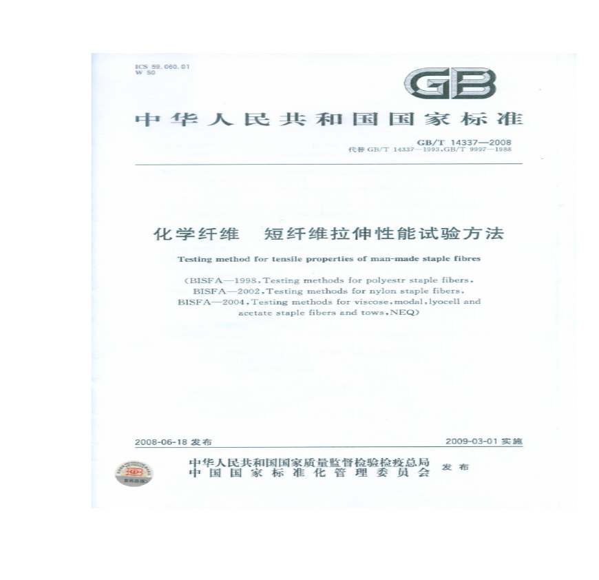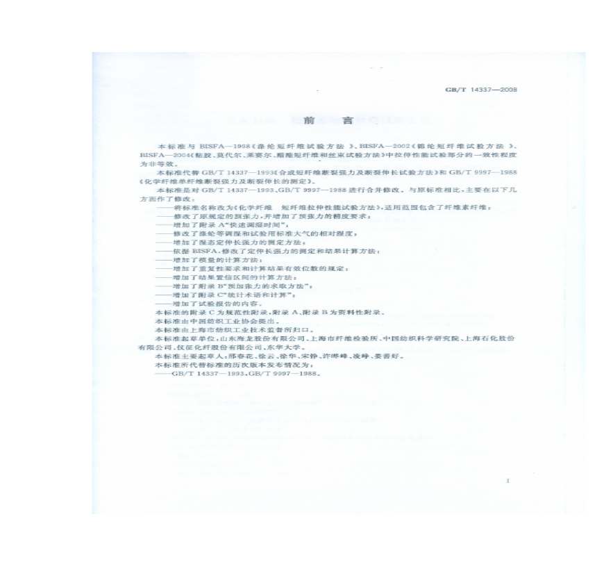 标准编号: 标准简介:本标准规定了化学纤维短纤维的单根纤维拉伸性能的试验。