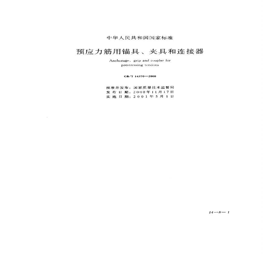 > GBT14370-2000预应力筋用锚具、夹具和连接器