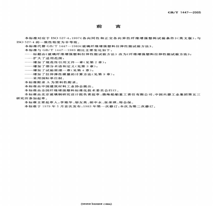 GBT 1447-2005 纤维增强塑料拉伸性能试验方法资料下载,喜欢的朋友可以下载收藏!