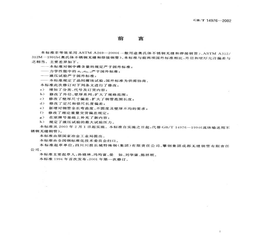 > GB/T14976-2002_流体输送用不锈钢无缝钢管