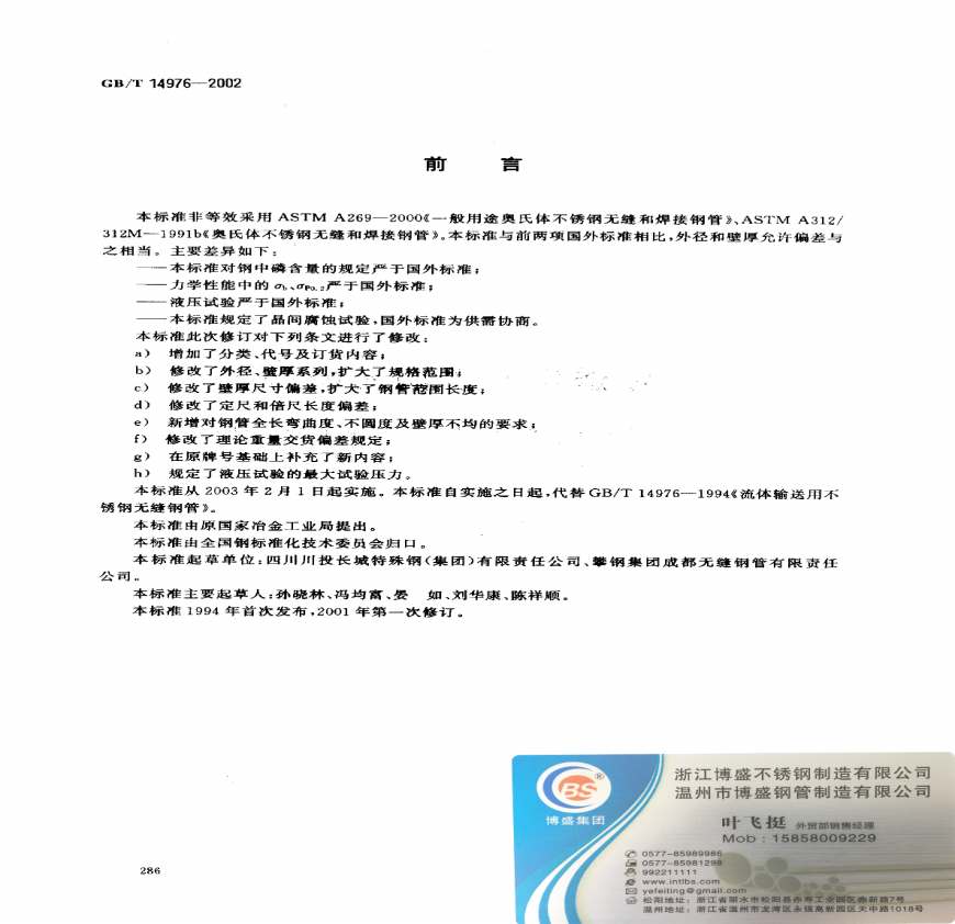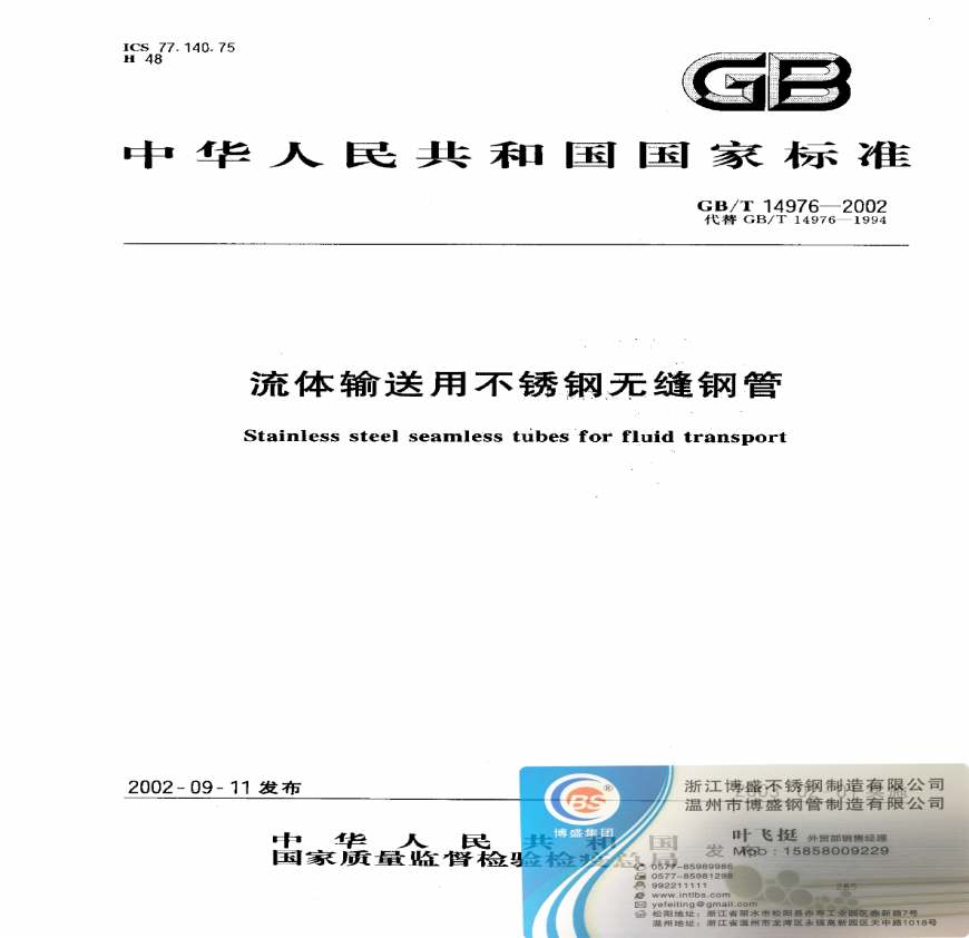 > GBT14976-2002 流体输送用不锈钢无缝钢管