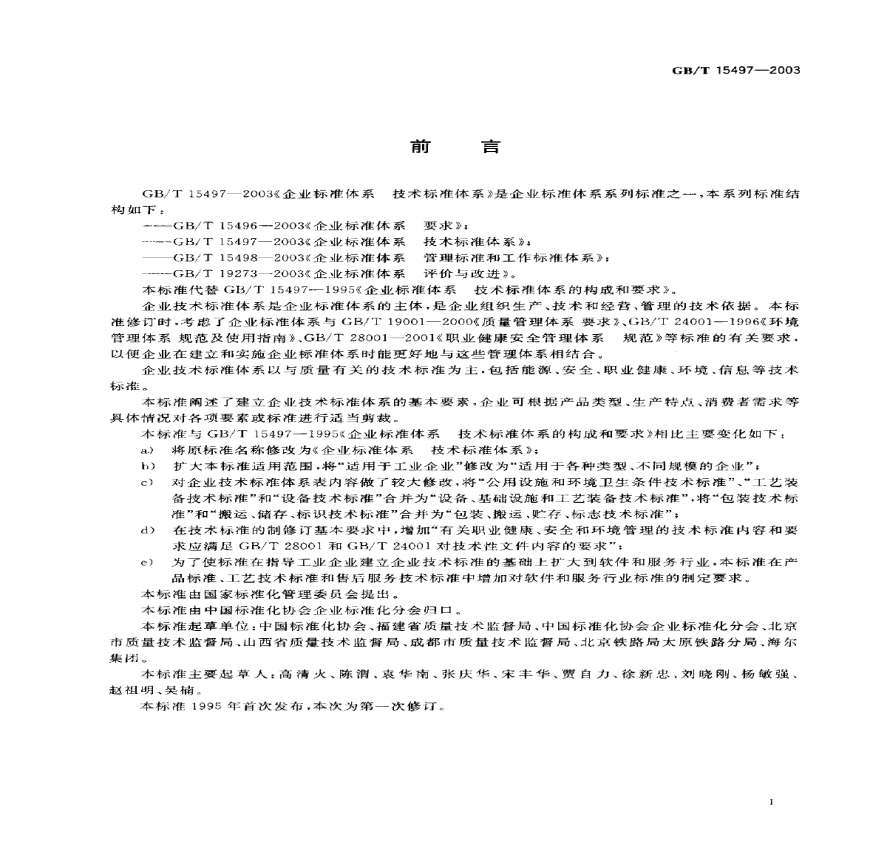 > GBT15497-2003 企业标准体系 技术标准体系