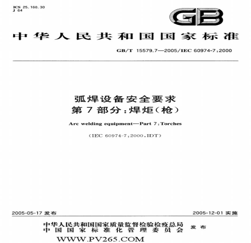 GBT 15579.7-2005 弧焊设备安全要求第7部分:焊炬(枪)资料下载,喜欢的朋友可以下载收藏!